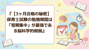 【3ヶ月合格の秘密】保育士試験の勉強期間は「短期集中」が最強である脳科学的根拠 「9科目もあるから、最低でも半年は必要でしょ?」そう思っているあなたへ。実は、学習期間が長ければ長いほど、合格率は下がる傾向にあります。なぜ […]